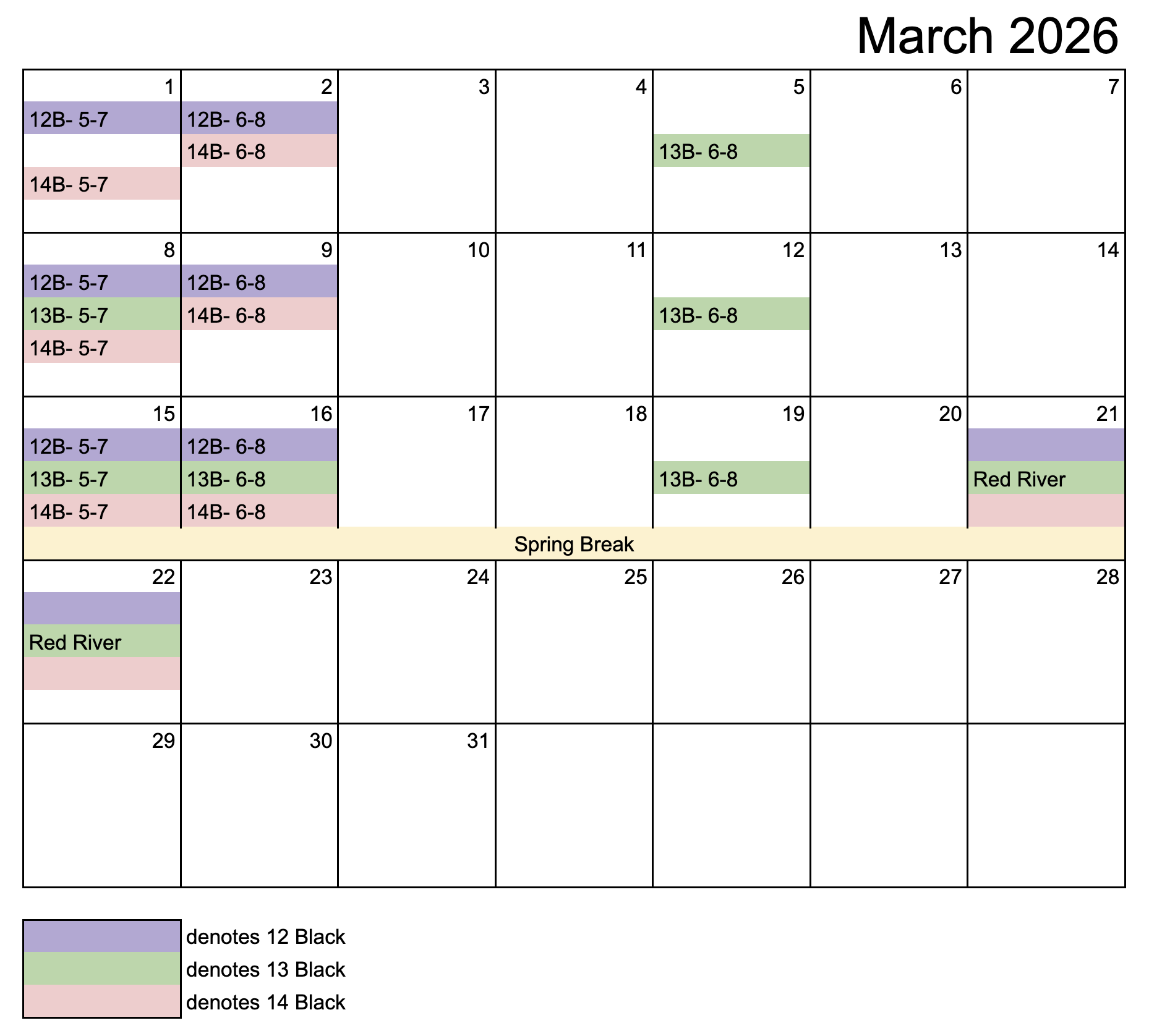 Practice ScheduleAll times and dates can be changed at any time. Immediate updates will be posted in our Club Team SportsYou’s. If you have any questions regarding practice times or tournaments, please reach out to your Coach.